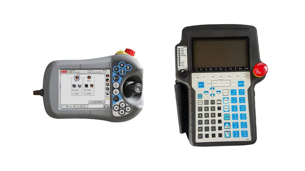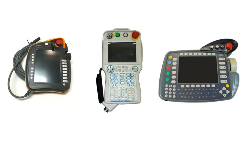 Nous intervenons sur les TEACH pendants et interfaces de programmation portables de marques telles que Fanuc, KUKA, Yaskawa, ABB, Staubli, UR (Universal Robots), Kawasaki, Epson, et autres fabricants de systèmes robotisés.